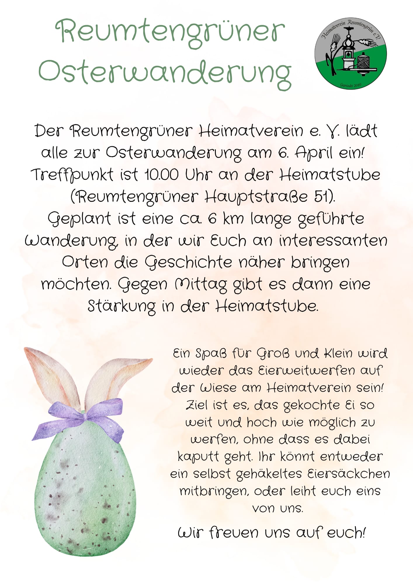 | 6. | 11:00 Uhr, Osterwanderung mit dem Heimatverein |