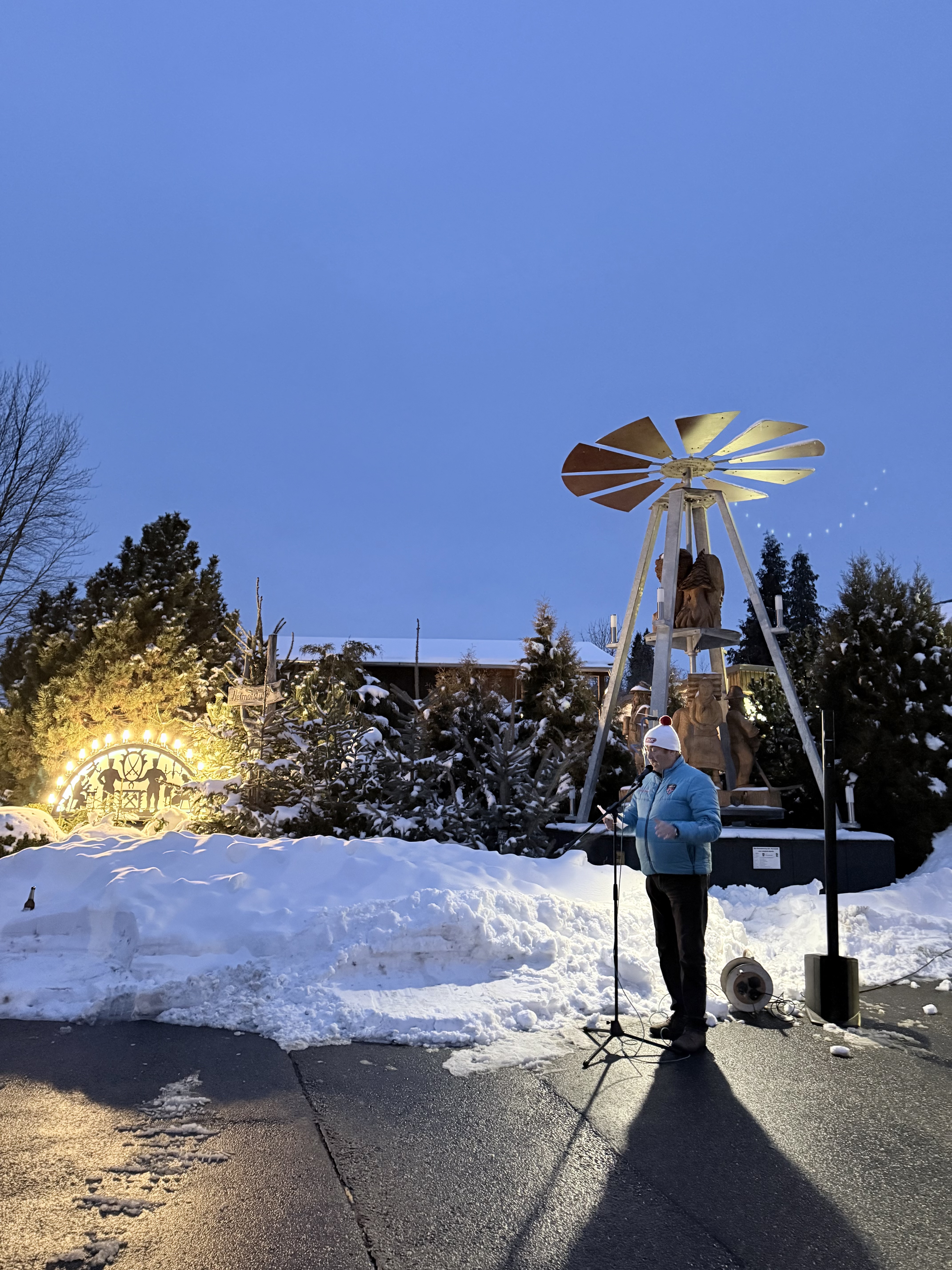 Für den 30. Januar luden die Heimatfreunde zum Abblühen ein, gleichzeitig sollte die Ortspyramide angehalten werden. Zahlreiche Gäste folgten der Einladung. Für das leibliche Wohl wurde wie immer ausreichend und ambitioniert gesorgt. Der Ortsvorsteher gab mit einer kleinen Ansprache das Zeichen zum Abschalten der Pyramide.